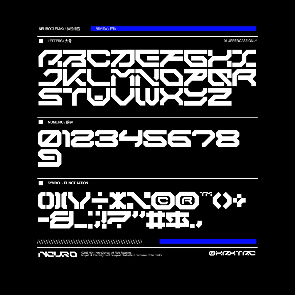Introducing Haxtac. Futuristic display font created by NeuroClemax with 45° curve and Bold-Shape style.