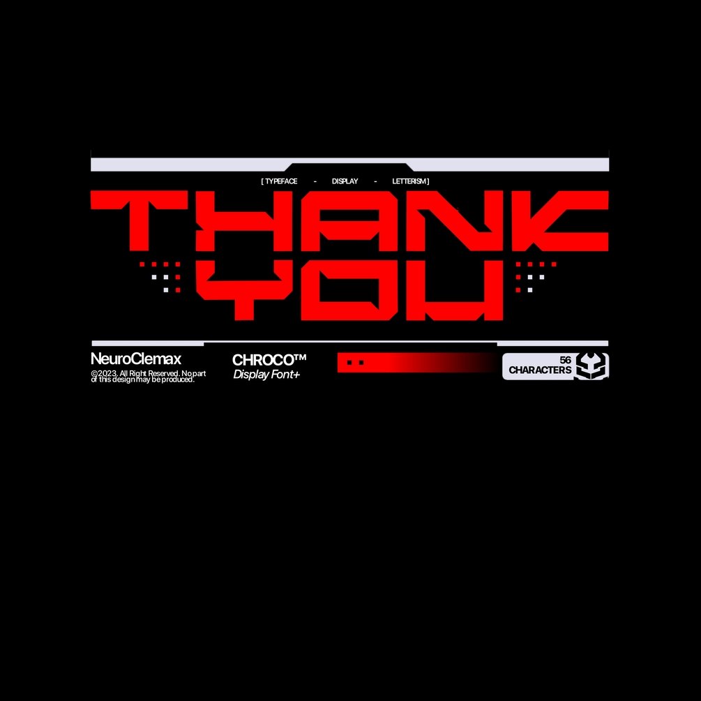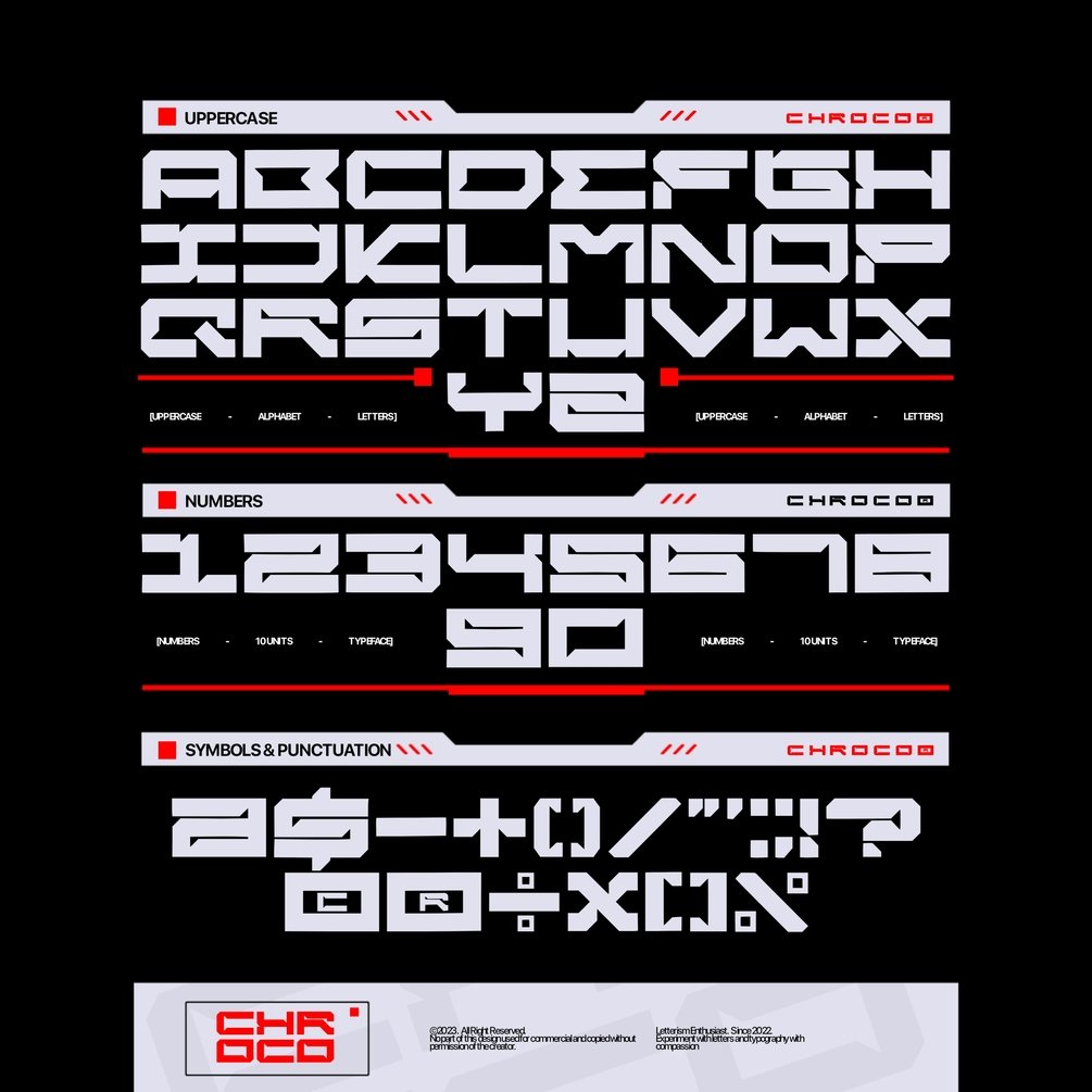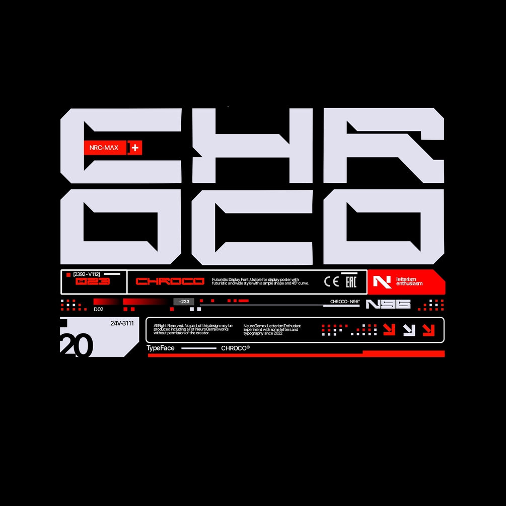 Introducing CHROCO. A Futuristic Display Font created by NeuroClemax with a Wide-Futuristic style and 45° Curve.